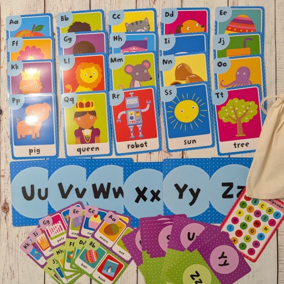 ALPHABET - 40 flashcards - karty z alfabetem, obrazkami i przykładami słów po angielsku