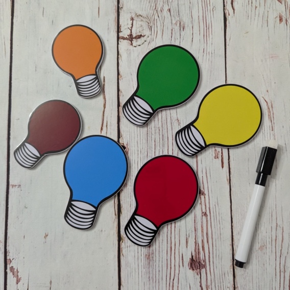 Magnetyczne kolorowe żarówki 6 sztuk - na tablicę do oznaczania kart, słówek + marker suchościeralny