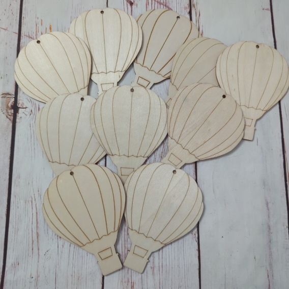 Zestaw balonów do pokolorowania wraz z dziurką na sznurek. 10 sztuk, wykonane z drewna, wymiary ok. 12x9 cm.