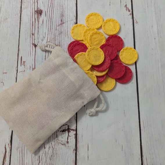 Zestaw 40 żetonów - 2 kolory w woreczku - z koroną stylizowaną na brytyjską oraz orzełkiem z drugiej strony
